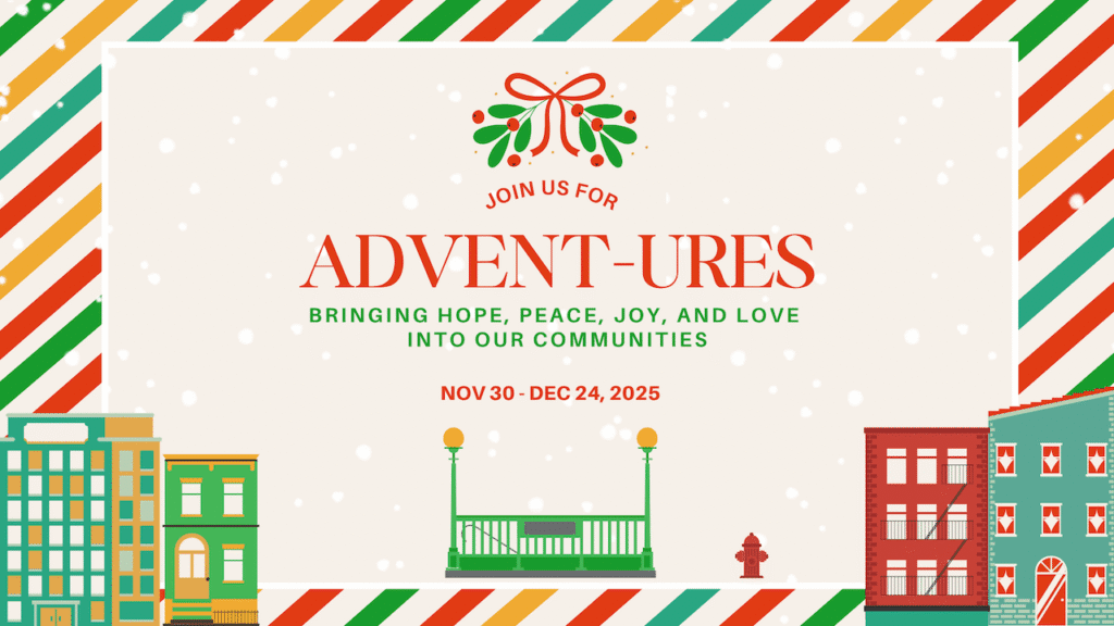 Join us as we celebrate the season of Advent with ADVENT-ures, our church tradition of sharing the light, hope, and peace of Jesus with the world around us! This season offers many opportunities to draw near to one another, just as Jesus drew near to us, and to share His love in meaningful ways. Our ADVENT-ures this year include: donations of undergarments, socks, and coats for those in need, The Christmas Missions Market, and connection and outreach opportunities within our church and community. Together, let’s let the love of Christ shine brightly in us and through us this Advent season!